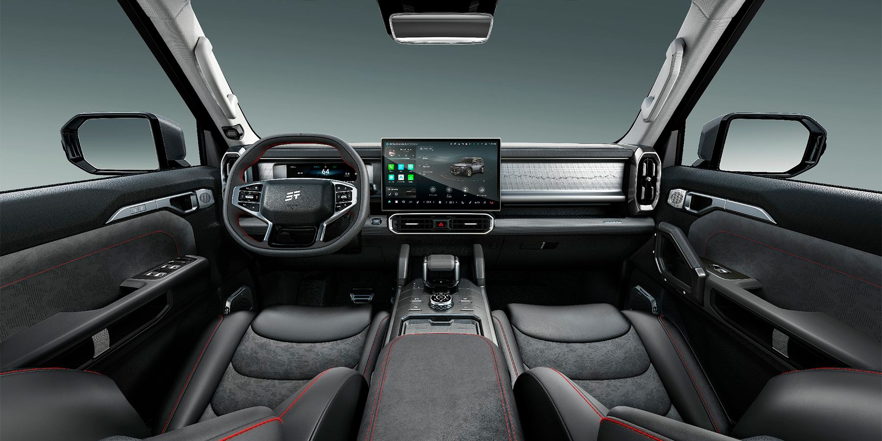 Габариты 4785 см x 2006 см x 1880 см и колесная база в 2800 мм обеспечивают повышенную вместительность пятиместного салона и отличную плавность хода. Минимальный дорожный просвет составляет 220 мм, что позволяет новому T2 с легкостью справляться с большинством сценариев дорожных условий. Передняя и задняя колеи шириной 1685 мм и 1695 мм соответственно обеспечивают устойчивость и безопасность при маневрировании. Короткие передние и задние свесы (892 мм и 1093 мм соответственно) гарантируют отличные внедорожные возможности автомобиля. Углы въезда и съезда составляют 28°. Новый T2 способен преодолевать брод глубиной до 700 мм.